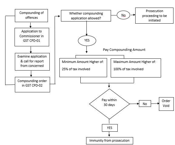 - An applicant may, either before or after the institution of prosecution, make an application under sec 138(1) of the CGST Act in Form GST CPD-01 to the Commissioner for compounding of an offence.