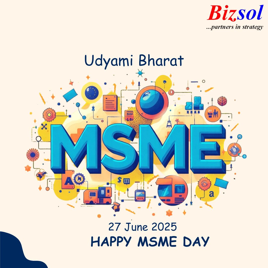 Happy MSME Day !!Bizsol Thinkline / By Team Bizsol Happy MSME Day !! Today we celebrate the strength and spirit of our Micro, Small & Medium Enterprises – the real drivers of jobs, innovation, and growth in India. Let’s keep supporting our MSMEs and help them grow stronger!